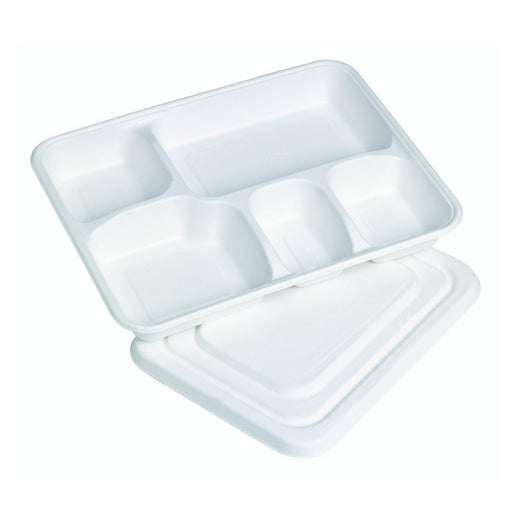 Bandeja de pulpa blanca 5 compartimentos con tapa 282x220mm A37,5mm - 50Uds
