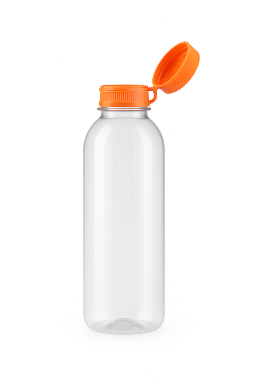 Botella RPET transparente con tapón unido naranja 1000ml A240mm - 74Uds