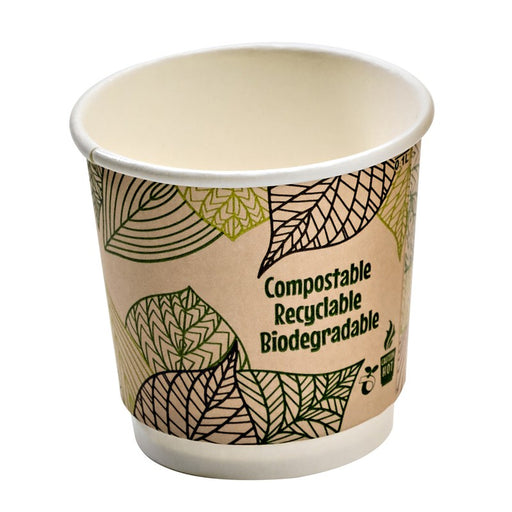 Vaso de cartón kraft con decoración de hojas de doble pared con laminado PLA 120ml A60mm - 50Uds