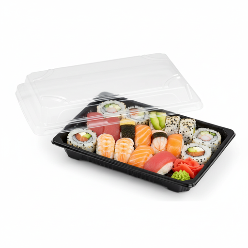 Bandeja PS negra para sushi con tapa transparente Suky 170x120mm A40mm - 50Uds