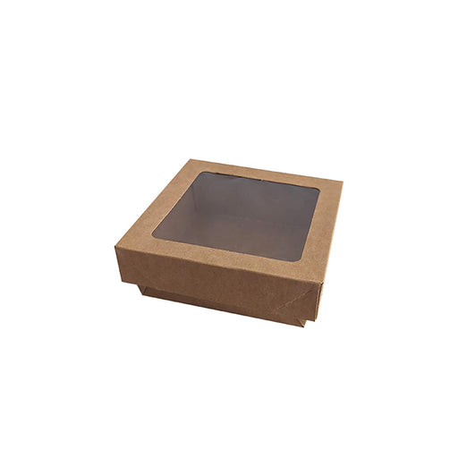 Caja horneable cuadrada de cartón marrón con tapa ventana KRAY 350ml 115x115mm A50mm - 25Uds