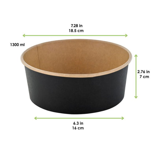 Ensaladera redonda multiusos BUCKATY cartón negro 1300ml Ø185mm A70mm - 45Uds