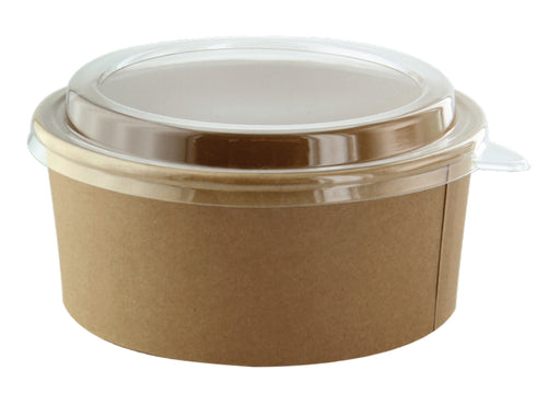 Combo Ensaladera redonda cartón kraft BUCKATY con tapa PET 1200ml Ø185mm A65mm - 25Uds