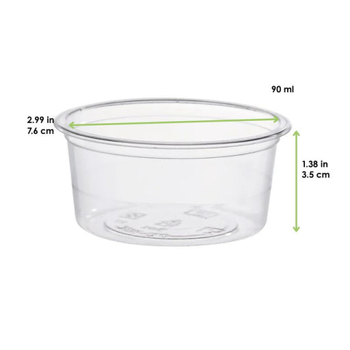 Descubre nuestra salsera redonda de plástico PLA transparente, ideal para el sector Horeca. Con un diámetro de 7,6 cm y una capacidad de 110 ml, es...