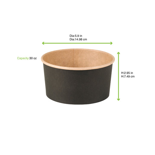 Combo Ensaladera redonda multiusos BUCKATY cartón kraft con tapa PET 750ml Ø145mm A68mm - 30Uds
