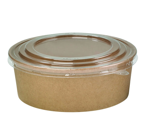 Combo Ensaladera redonda multiusos BUCKATY cartón kraft con tapa PET 1250ml Ø185mm A65mm - 50Uds