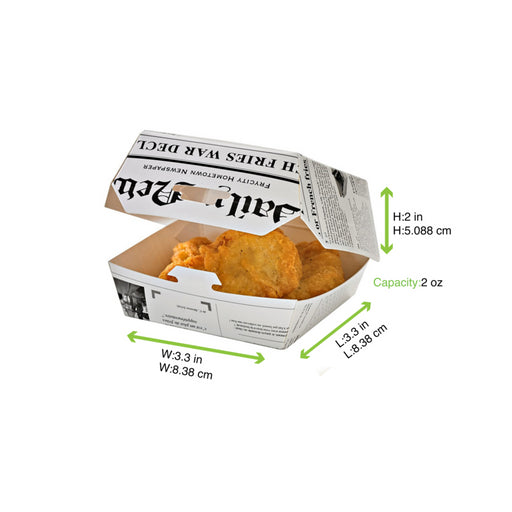Caja de cartón blanco para hamburguesas diseño News 75x75mm A50mm - 50Uds