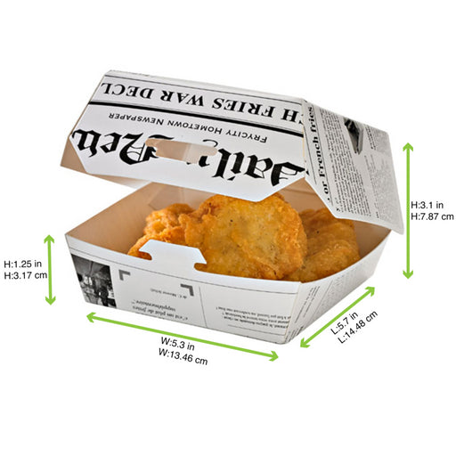 Caja de cartón blanco para hamburguesas diseño News 135x125mm A65mm - 50Uds