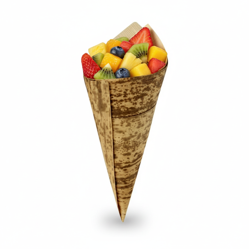 Descubre el Cono de hoja de bambú de 170 mm y 147 ml, perfecto para presentar aperitivos y snacks en eventos Horeca. Su diseño natural en bambú apo...