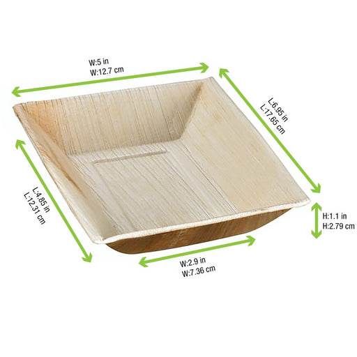 Mini plato de hoja de palmera con 2 compartimentos 100x100mm A15mm - 10Uds