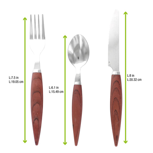 Descubre nuestro Kit de 3/1 de cubiertos inox con mango negro, que incluye cuchillo, tenedor y cuchara de elegante diseño. Con un alto de 18,5 cm y...
