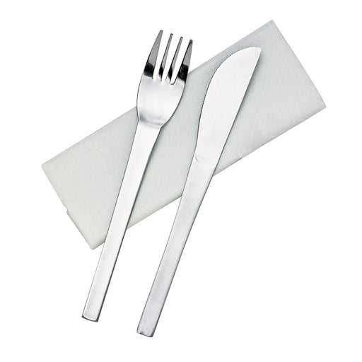 3/1 cubiertos de acero inoxidable, cuchillo, tenedor, servilleta, envoltorio de papel 210x60mm A15mm - 250Uds