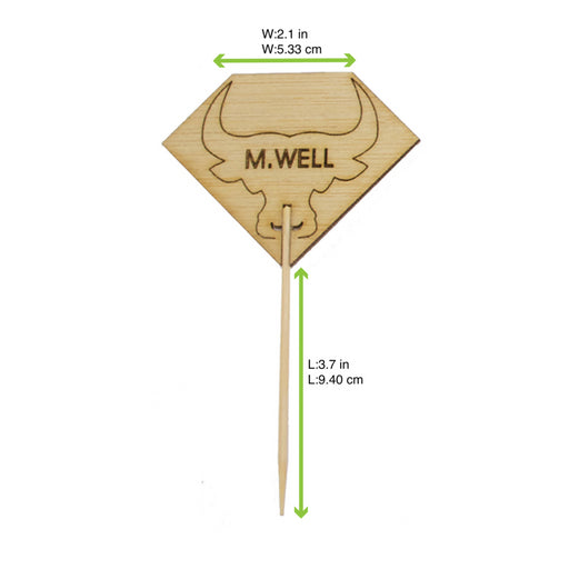 Pincho para carne de bambú con decoración de cabeza de toro, cocción media (al punto) 54mm A95mm - 100Uds