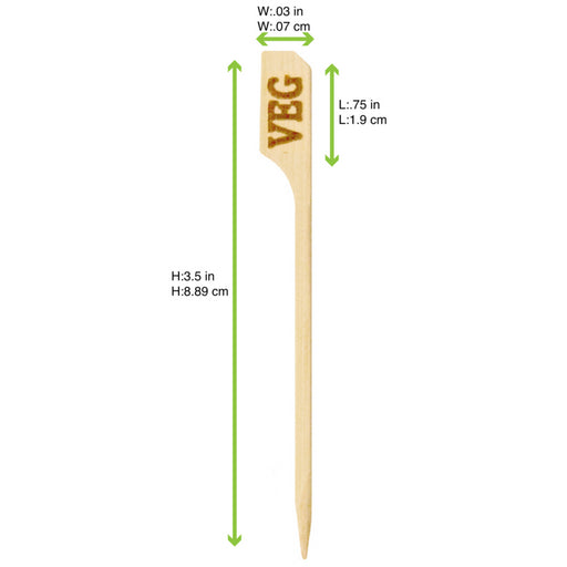 Pincho de bambú Teppo Gushi con inscripción Veg (vegetariano) A90mm - 100Uds