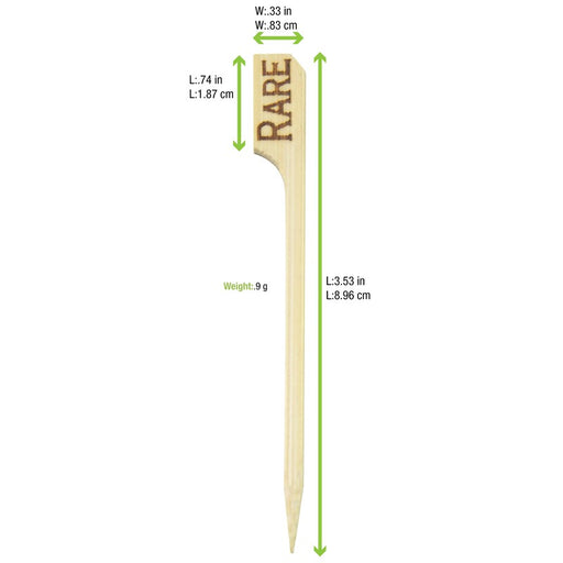 Pincho de bambú Teppo Gushi para carne con inscripción Rare (crudo) 90mm - 100Uds