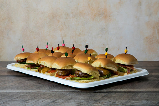 Descubre nuestros elegantes pinchos de bambú de 90 mm con una perla blanca en el extremo, ideales para presentar tus aperitivos en eventos y cateri...