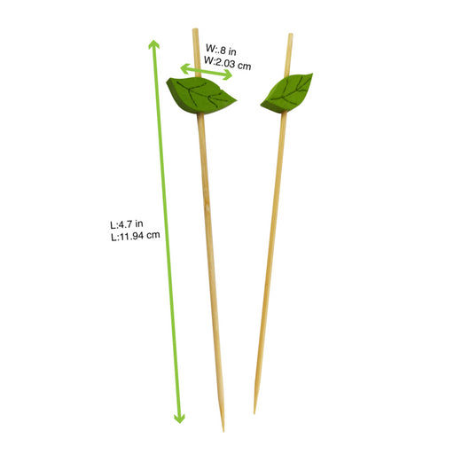 Pincho de bambú con decoración de hojas 120mm - 100Uds