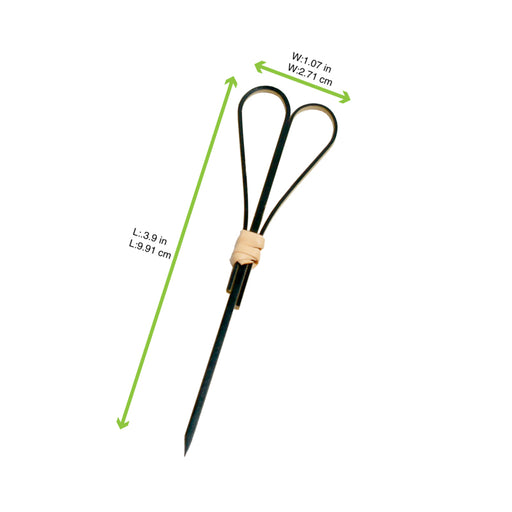 Pincho de bambú Tingi negro retorcido con un extremo en forma de bucle 100mm - 100Uds