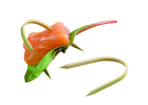 Descubre nuestros pinchos de bambú curvados con extremo en forma de bucle, ideales para presentar tus aperitivos de manera elegante. Con una longit...