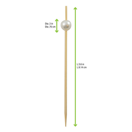 Pincho de bambú con perla blanca en el extremo 90mm - 100Uds