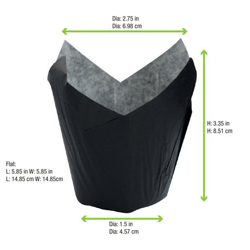 Papel negro tulipa de cocción antigrasa 175x175mm A90mm - 60Uds