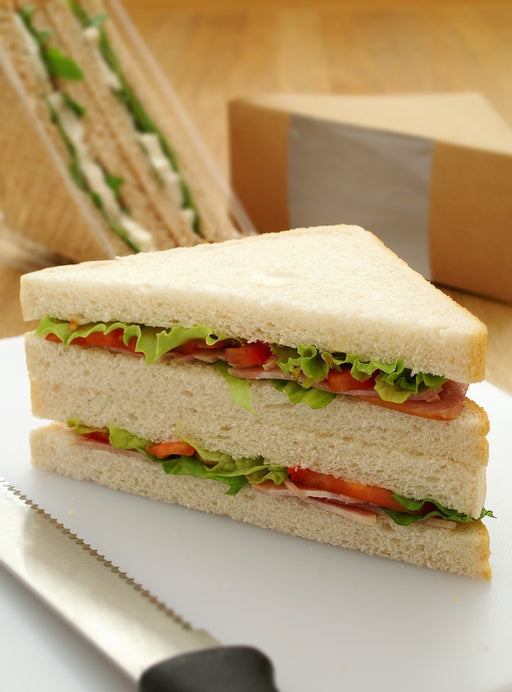 Envase Kraft simple con ventana para sandwich triangular 50x123mm A123mm - 50Uds