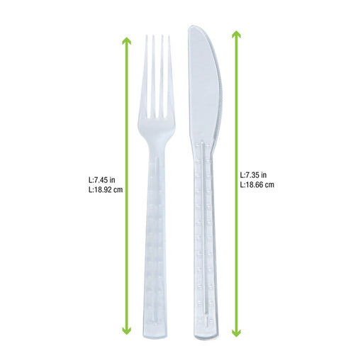 Kit 2/1 cubiertos blancos en CPLA 2/1: Cuchillo y tenedor, envoltorio biodegradabile A180mm - 250Uds