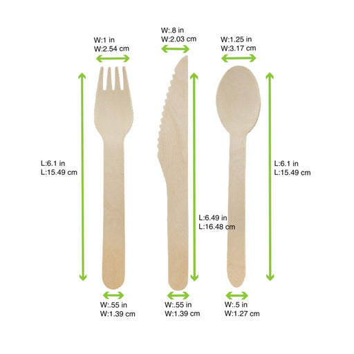 Kit cubiertos de madera 3/1 21x8mm A165mm - 24Uds