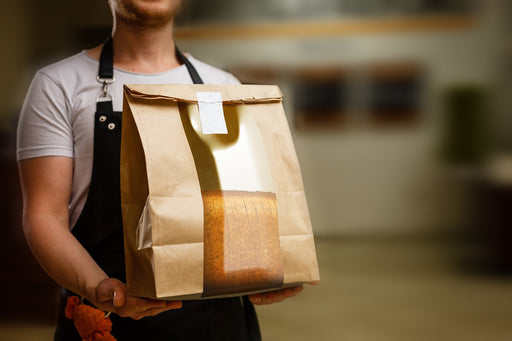 Descubre la bolsa de papel Ecokraft SOS marrón con ventana y cierre plegable metálico, ideal para tu negocio Horeca. Con dimensiones de 120x60mm y ...