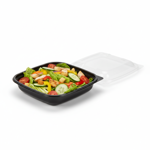 Combo Ensaladera PET cuadrada negra con Tapa 1000ml 190x190mm A55mm - 150Uds