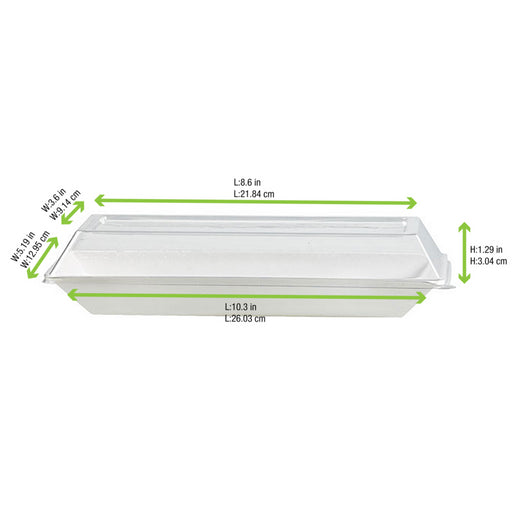 Descubra la tapa cúpula rectangular blanca de plástico PET, ideal para mantener la frescura de sus platillos en el sector Horeca. Con medidas de 26...