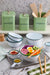 Cacerola mini de acero esmaltado blanco Enamely con borde verde 100ml A30mm - 12Uds