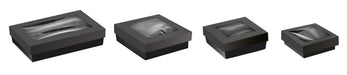 Caja cuadrada de cartón negro con tapa ventana KRAY 700ml 135x135mm A50mm - 25Uds