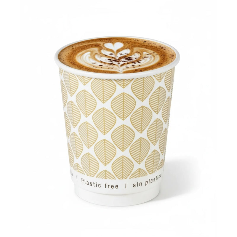 Vaso de cartón marrón de doble pared sin plástico, Base agua 230ml Ø80mm A92mm - 25Uds