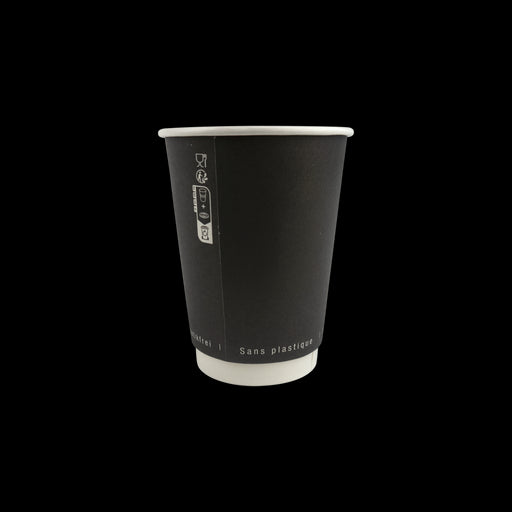 Vaso de cartón negro de doble pared sin plástico, Base agua 460ml A136mm - 25Uds